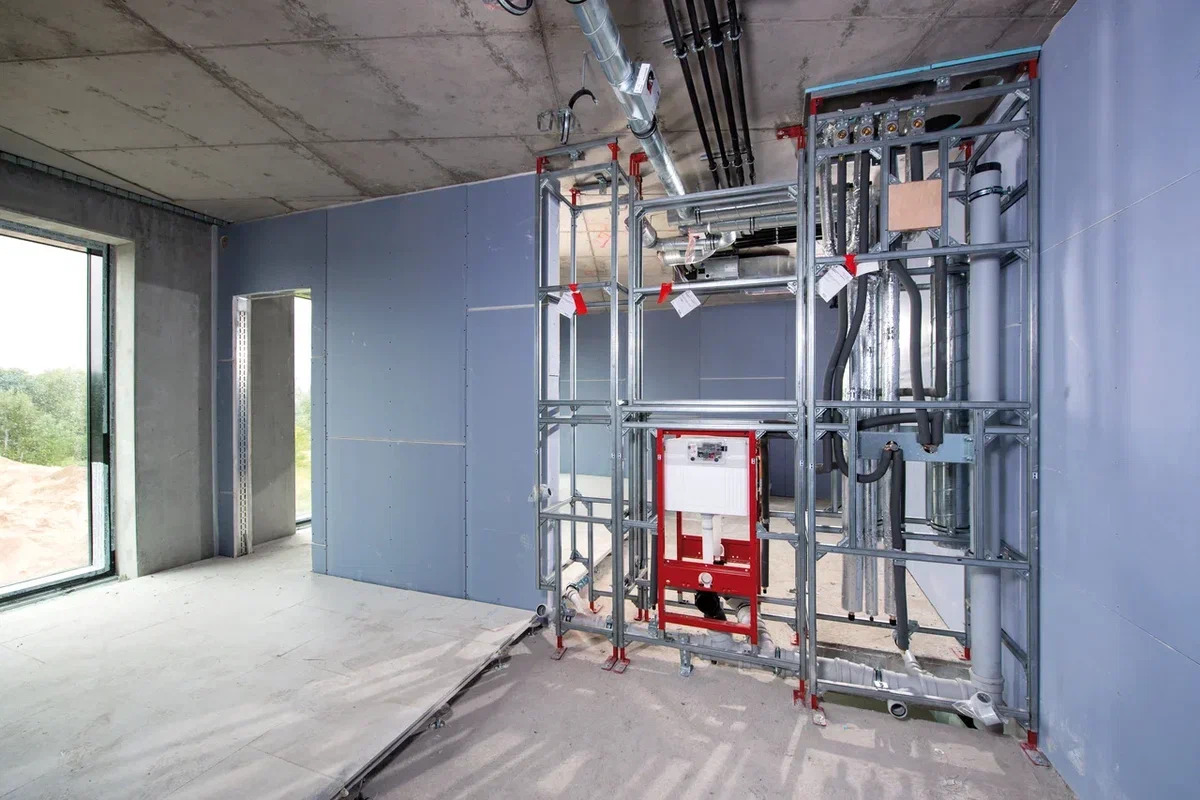 Технология предварительной отделки стен позволяет реализовывать различные варианты планировки помещений и соответствовать всем нормам и стандартам. Это простой и безопасный метод ремонта ванной комнаты, который осуществляется с помощью элемента TECEprofil pre-wall. Независимо от сложности проекта, этот метод обеспечивает быстрый и эффективный монтаж сантехники, обеспечивая максимальный комфорт и удобство использования ванной комнаты.