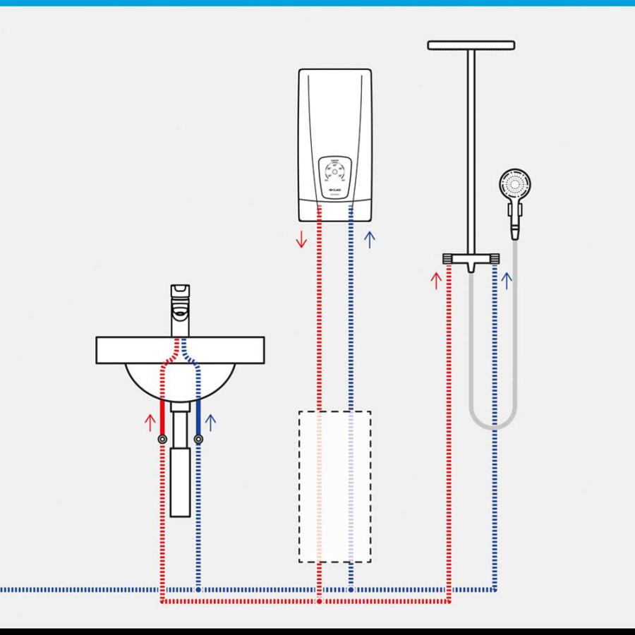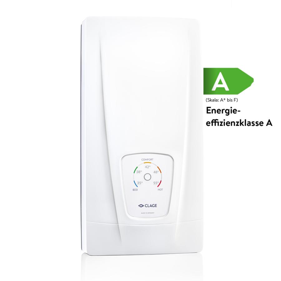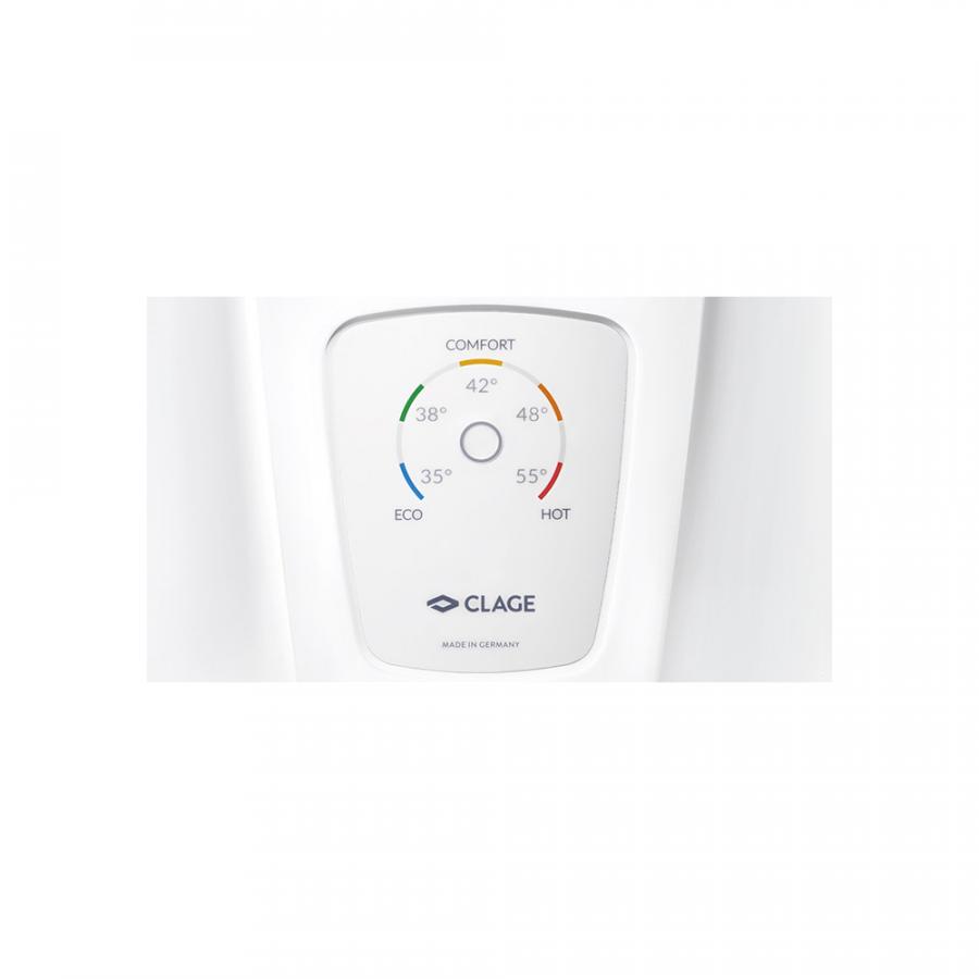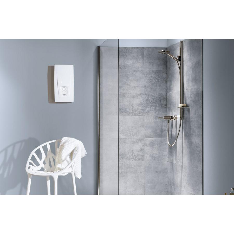 Проточный водонагреватель DCX 13 Next серии E comfort убеждает своей простой концепцией управления. С помощью сенсорной кнопки можно выбрать одну из пяти типичных температур нагрева воды. На это указывает интуитивно понятный цвет сигнала.