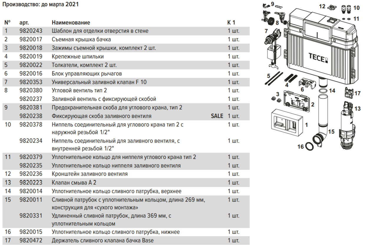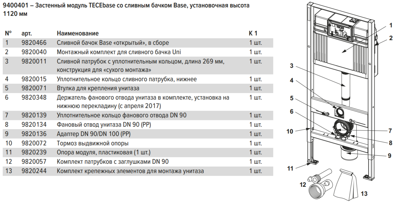 отверстие для панели смыва, при этом все элементы