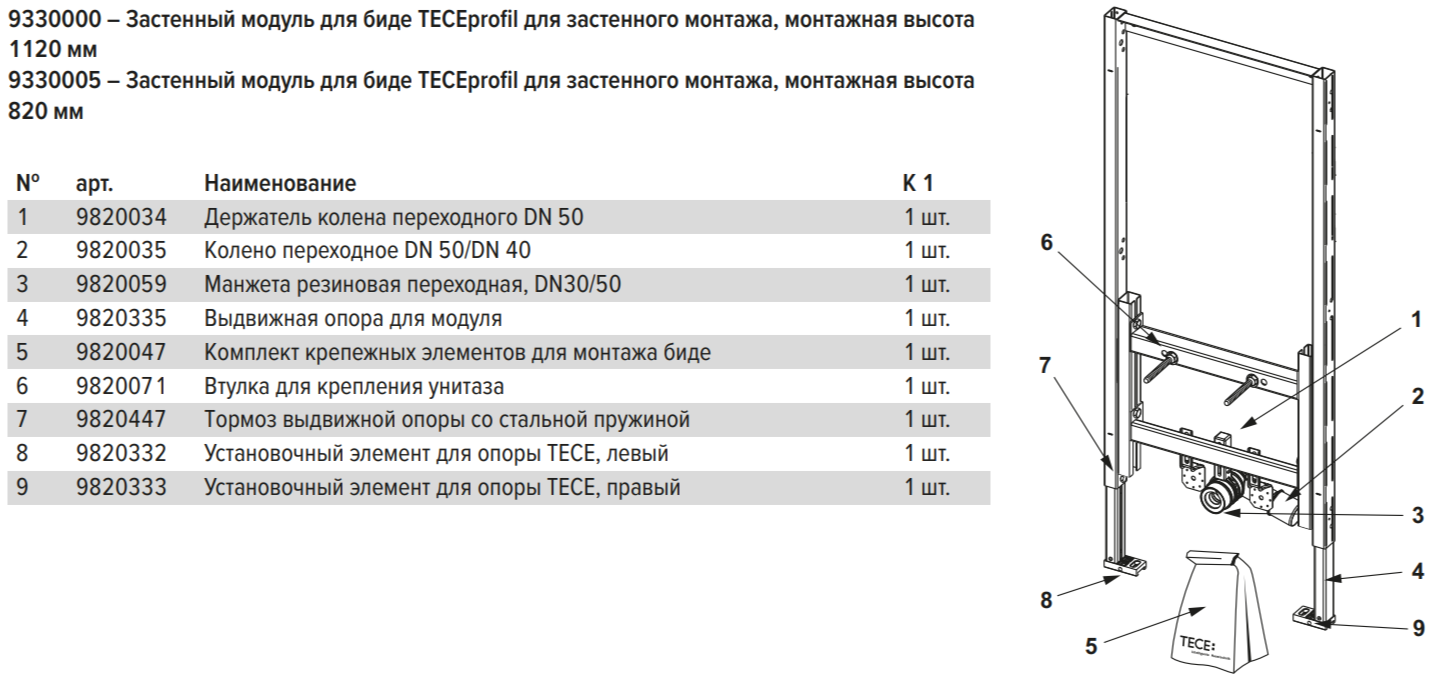 в систему профиля TECE, на капитальную стену |